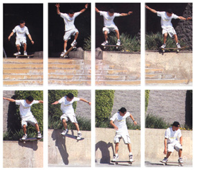 on the ledge, that's a 50-50. Be sure to put weight on both trucks,